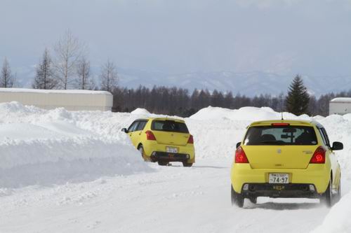 「いや~今年は雪も多いし、寒いから冬のコースが溶けないんだよね~・・・ ど~やって冬コース溶かすべ?」 と思っていたくらい今年の冬コースコンディションが良い。 例年であれば前の週に開催している ATVイベント で溶けだす冬コースなのに、今年は全然溶ける感じがしないので、本日(3月11日)開催の走行会も最後まで走れるべ? と思っていたけど・・・ ま~この走行会の参加者は鬼のように走る。 そりゃそ~だよね? この走行会の名称(勝手に命名)が ”冬のコースはaxionに壊してもらもう走行会”って言うんだから、コースの氷が無くなるまで走って正解。 午前中のコースコンディションは見慣れた真っ白な路面。黄色いスイフトが2台連なって走る様が綺麗でしょ? コマ送りとは違うからね(*^_^*) でも走りまくって・・・