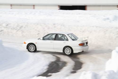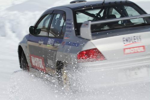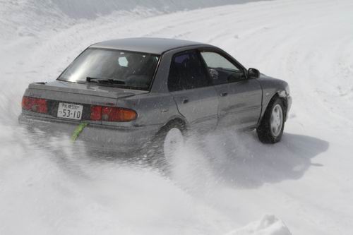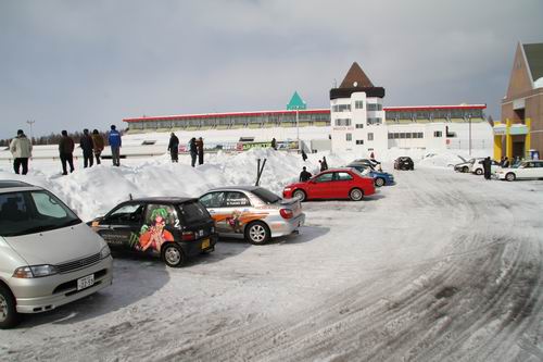 午前中はスパイクタイヤもガンガン走りまくっていたけど、午後になって気温の上昇とともにコースの氷も一挙に溶けだしたのでスパイクタイヤの走行は禁止に・・・