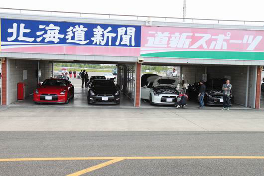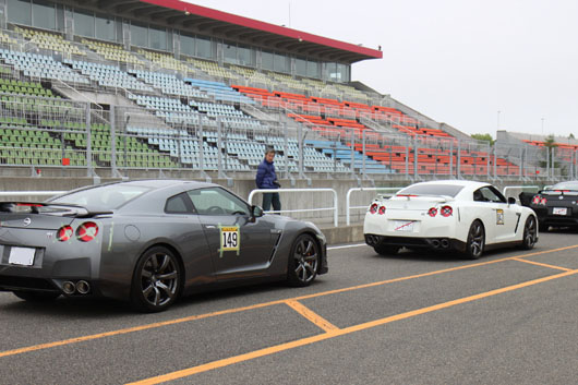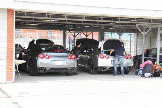 4年目を迎えた「GTRサーキットミーティング」。「GTRサーキットミーティング」も参加者が久しぶりに多かったですね。 写真はないですがこの日は、先程紹介した「SYSTEM-R走行会」の参加者や翌日のイベントの参加者も含めると多くの方々でパドックが賑わっていました。 サーキット走るのは「GTRサーキットミーティング」だけという常連さんにとっては、こんなにピットが埋まっているのを見たのは初めてだったのではないかな。 今回、参加者の約1/3の方がサーキット初走行となりました。 ビギナー(ガンガン行かない)方用にナンバープレートにちょっとした目印をつけてわかるようにしてあるので、ビギナーの方も安心して参加頂けます。