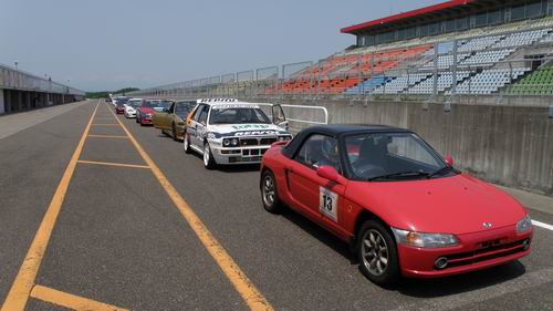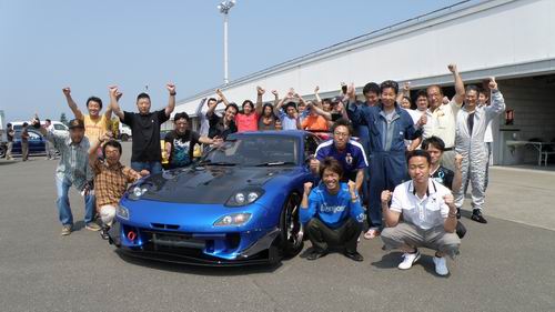 眩しすぎです~(^◇^) 早くもシリーズ第3回目の開催となった EURO&WORLDcup はやっと青空の元で開催する事ができました~!! 記念写真も新品ピッカピカに塗り替えてきた ブルーのFD3S を囲んでの記念写真! この青は スバルブリー らしいけど、綺麗ですね~。 たぶんFD純生色でこんなに明るいブルーって無いんじゃないかな?? この日はクラブマンコースから走り始めたんだけど写真のPitロードとストレート以外は物凄い日差しの逆光で、写真を写しているだけど日焼けしちゃう始末(*_*)色つきのクルマはま~なんとかなるけど私のカメラの強敵は・・・