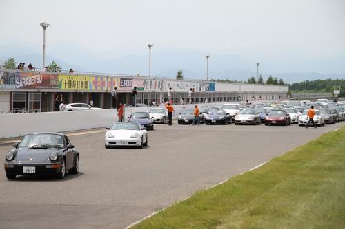 「あと24台集まればポルシェだけでも100台だ~!!」 って叫んだのは先週の話なんだけど、7月1日(日曜日)の北海道ポルシェミーティング≪ポルシェサーキットDays≫に参加したポルシェの台数は・・・ たぶん 92台 くらい! TOPの写真に並んでいるのが 13列x6列 の78台。 この撮影の時にPitに止まっていたのが 8台位 だったと思う。 そしてパドックエリアに止まっていたのが6台? だったような。 78台に14台を足すと92台だ! でも「先に帰ります~」とオフ会に来ていた方々もいたから、たぶん92台は越えていたかもしれない! 真剣に数を数えればよかったと思っても後の祭りだから、来年開催時にはちゃんと数える事にします。ま~夢のようなクルマがた~くさん集まってくれて 「いったい総額いくらなんだべ?」と指折り計算したけど指が足りませんでした<`ヘ´> この日参加してくれたっみんなで EUROcup に参加してくれたり、GTシリーズのEUROクラスに参加してくれたらすげ~事になるんだけどな~・・・。 待ってるよ! ≪集合写真に参加者した方々へ連絡です≫ このイベントを主催した ”ポルシェセンター札幌さん”と ”BRAZOさん” に集合写真を紙焼きした写真があるらしいですよ! 記念なので見に行ってみたら主催した方々も嬉しいと思いますよ! 見に行ってね!!