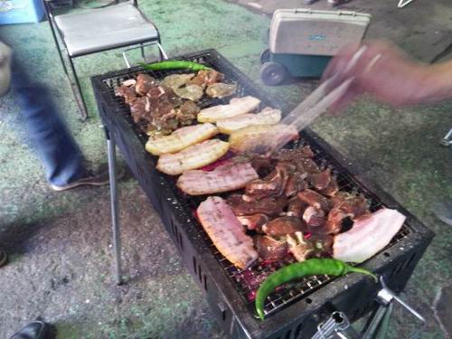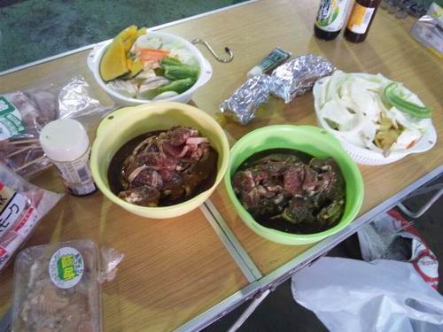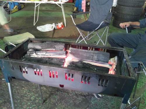 EURO&WORLDcupに参加している方々でなにやら楽しげなお食事会(BBQ)を開催するよ・・・ との連絡があり 「それではチョットだけでもご挨拶がてら参加してみよう\(^o^)/」と参加してきました! お食事会の名称は ”のそりんの夕べ” まずはBBQの基本中の基本である炭に火を点火なんだけど、自分が到着した時にはもう完成していて ”パチパチ” って素敵音がしています。そして材料はこんな感じ・・・