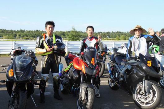 ジュニアコースでは、バイクレッスンイベント「十勝ライディングレッスンinジュニア」がありました。 サーキットを走行するのが初めてという方から、十勝ロードレース選手権に参加している方まで参加者は様々。 サーキットを走行するのが初めてだった方を紹介。左からサーキットの楽しさを知りたいと参加されたDaytona675のI原さん、技術の向上の為に参加されたZ1000のHさん、サーキットデビューの為に参加されたZZR1400のS谷さん。