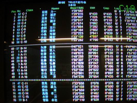 昨日は第1回TRUST走行会。 前日の土曜日は暖かかったのに、昨日はホント寒かった。太陽が出ていないと最悪ですね。 でも、この寒さがエンジンには最高とばかりに多くのお客様にご参加頂きました。 ご参加ありがとうございます!4輪の走行会(夏祭り除く)でタイム画面がスクロールするのを見るのは、かなり久しぶりのような・・・ 当初2グループの開催予定でしたが、皆さんの意向で3グループでの走行に変更。 「2グループ×3本=6本」を「3グループ×3本=9本」に変更したので、タイムスケジュールが忙しくなります。 しかし、ドラミでお願いしたことを皆さんが協力してくれ、タイムスケジュールが遅れることなく完璧に進行しました。主催者一同驚きです。