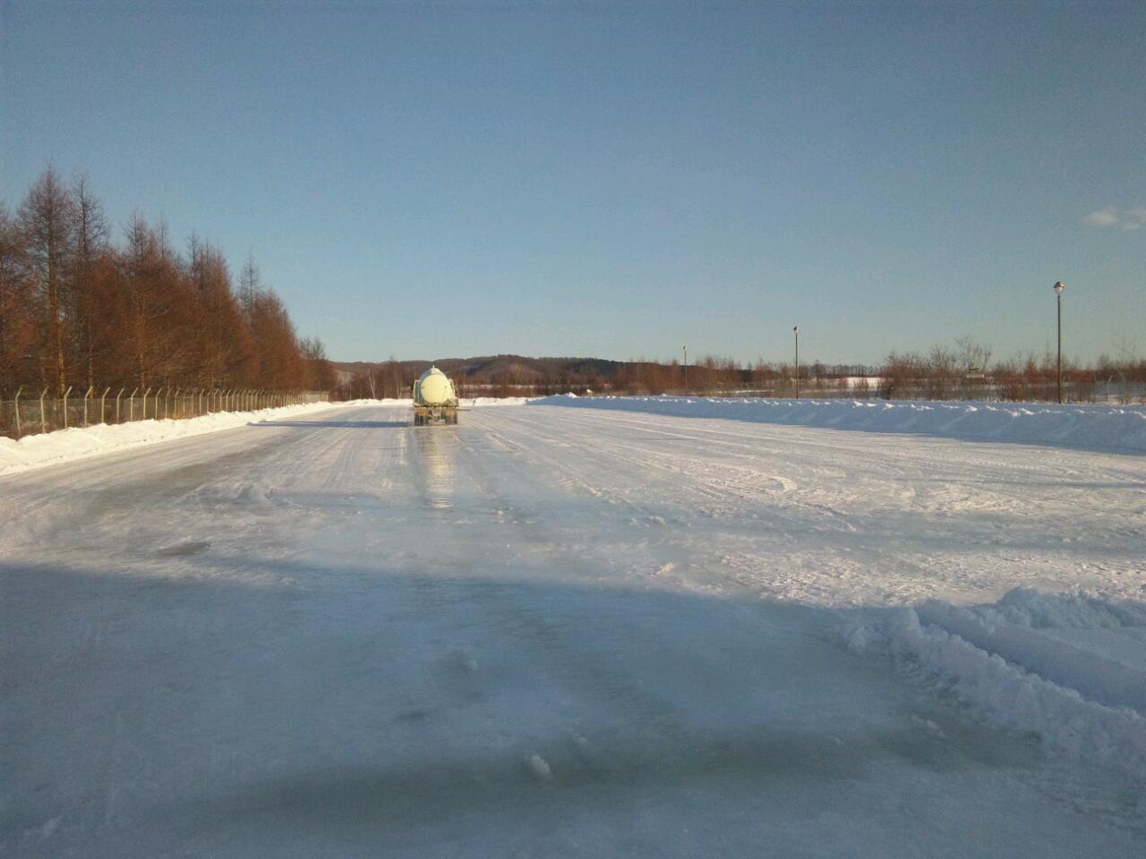 みんな~凍ってない? 十勝地方はここ数日連ちゃんで氷点下15度を下回る? 極寒の地になっています。 みんなの住む所は暖かいですか? 暖かい所に行きたいけどこの寒さを感じないのも寂しい気がするしな~・・・。 と言っても本日記録した氷点下21度はやっぱり寒いよ! 寒すぎます。 おいらもテレビでよくやっている濡れたタオルを振り回してみようかな~(*^_^*) と思うほどよく凍るこの日(寒さ)を利用して作業しているのが ”リンク作成作業”だ!!氷点下20度を超えると水を撒けば撒くほど凍ります! 水が流れている形(なみなみ)で凍っていくんですよ。 もの凄く凍るから楽しくなってくるのも不思議なんだよね~(*^_^*) でも寒い。 この寒さももうちょっとらしいので我慢我慢で水をせっせと撒くのであった!!
