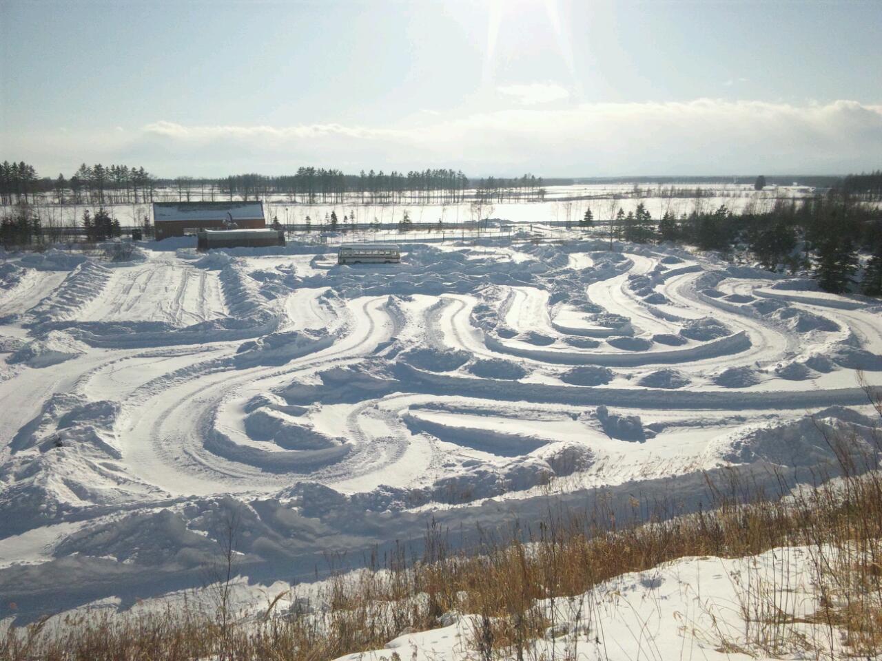 1月20日(日曜日)開催の 雪中バイクde3時間走り耐 のコースが完成しました~\(^o^)/ 見ての通りで クネクネ した雪中特設コースです。 全長&予定LAPタイムは・・・ 本日(1月17日)の日中の気温が寒すぎて試走を断念・・・((+_+)) だって寒いんだもん。 ショベルから降りて 「路面を確認・・」 なんてしていても ”さむー(痛い)” って感じだったので、明日にでも挑戦してみようかな? コースの幅は ショベルの1.5台~2台分の幅はあるので余裕だよね?路面は見ての通りでほぼフラットのコース! しかも かっちんかっちん のフラット雪コースだゾ\(^o^)/ イベント当日の気温も 氷点下20度前後 の予報になっているので、暖かい服装を忘れないでね! ◆集合時間 1月20日(日) 朝8時~9時 にサウスゲートに集合 ◆受付時間 朝8時~朝9時 サウスゲートの事務所 ◆走行説明 朝9時15分頃~9時30分頃 ◆試走時間 朝9時35分頃~ 1LAP *予選じゃないよ! ◆決勝時間 朝10時~ スタート ➡ 13時ゴールを予定。 ★ 雪中バイクde3時間遊び耐 第1戦 エントリーリスト ========================================== ========================================== 完成しましたよ\(^o^)/ と言っていいのかな? 今週末(1月20日)開催の 雪中バイクde3時間走り耐 の開催コースが完成しました~!! と言いたいのですが、もの凄い暴風の中(1月15日)で作っているので最初に作った場所が雪で埋まって来ました((+_+)) いったいどんだけ風が吹くんだろう! 2013年冬バイクコースの特徴は・・・ ”初雪コースのように皆が満喫できるように!” という思いで作成しています。 昨年走った参加者からは・・・ 「なんだか簡単なコースだな~!」 「これなら誰でも走れるな<`ヘ´>」 などなどの意見があったので2013年冬のバイクコースはチョットだけ難易度を上げています。 走った事のある面々なら覚えているだろうあの ”直角左ターン&登り坂” を! 今年は復活です。 さらに・・・ いつもの大登り坂は ”助走区間を短縮” しています。 開催2年目のあの悪夢がよみがえるのか・・・(*^_^*) さ~今年も楽しいバイクイベントになりそうだ\(^o^)/ でもその前にコースを復旧しなくては・・・((+_+))