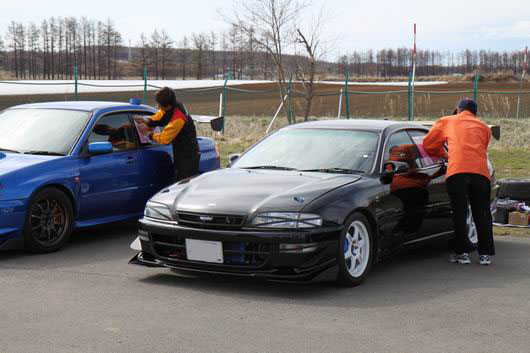 昨年までkeiさんが開催していたEscapeZone走行会。 Keiさんの神奈川引越しにより、昨年で終わりかと思われていた走行会ですが、マサキさんと黒い救急車さんが引き継ぎ、本日無事開催となりました。 黒い救急車さんが来る途中の積雪で、「何度行くの止めようかと思ったけれど、走行会で使用する一式を自分が持っているので何とか行かなきゃと思った」と話されていました。 その一式の1つがゼッケン。