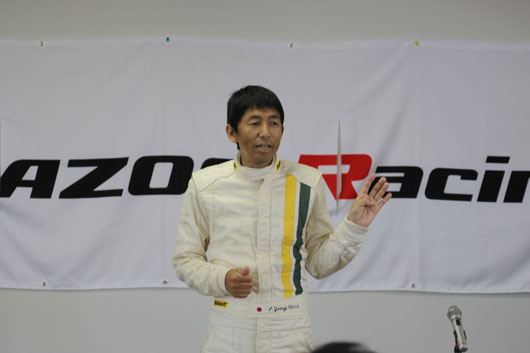 “レーシングドライバーに挑戦!”と銘打ち、 講師の一人であるスーパーGT(GT500)ドライバーの大嶋和也選手に皆で挑戦しました。