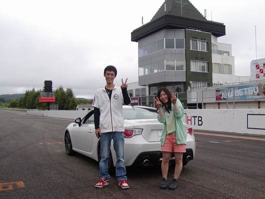 広島から新婚旅行でお越しになったK原夫妻。 4泊5日の行程で道内を回っていて、昨日はここ十勝スピードウェイを見学。 K原(夫)さんは、エボ6でTSタカタサーキットを走行されていて、ここ十勝スピードウェイは是非とも訪れたかった場所との事。 クラブマンコース体験走行をして、記念撮影。 昨日は「SYSTEM-R走行会」があり、ジュニアコースも体験出来たよう。 たまたま乗りたかったから借りたと言うBRZで来られたのも良かったですね。 (86/BRZ応援企画実施中!)