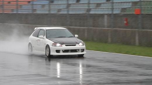6月に入って最初のブログとして・・・ 1週間前の火曜日のタイム計測走行会の結果表をアップします。 決して忘れていたわけではありません。この日を狙っていたンです・・・。 では参加者2名の紹介です。 大雨の中でもサーキットに来てくれた2名です。 ◆シビックEK-9 2分06秒137 41/41◆GTO 2分11秒779 40/50