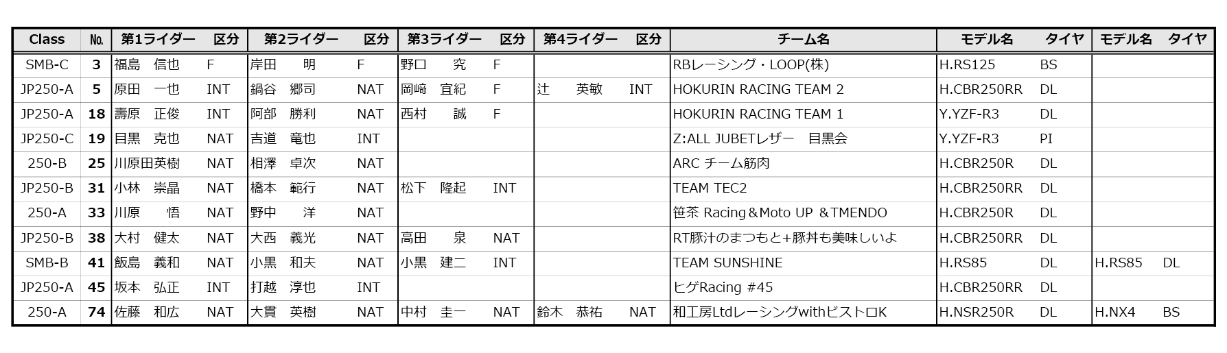 暫定エントリーリスト更新。タイムテーブル・ピット割掲載。