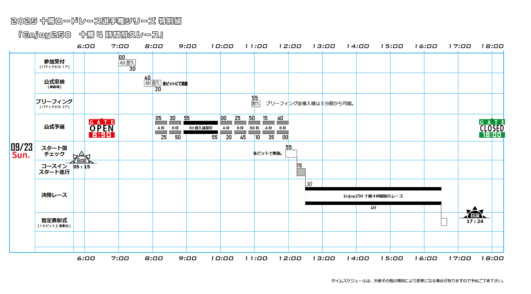 ブリーフィング 10:55~ ※ライダー・ピット責任者は必ず出席してください